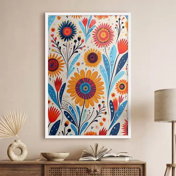 Poster Stilisierte Blumen in blauer und orangefarbener Palette Nr f44761
