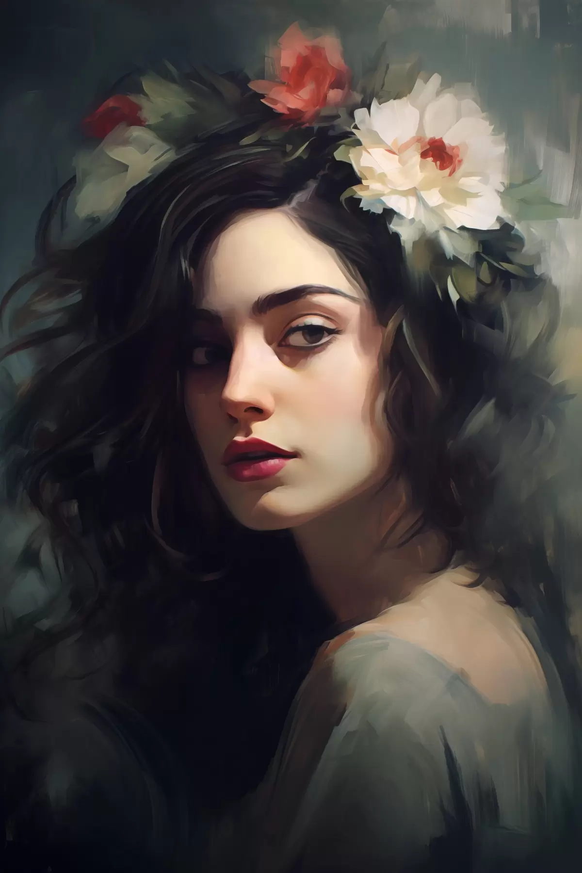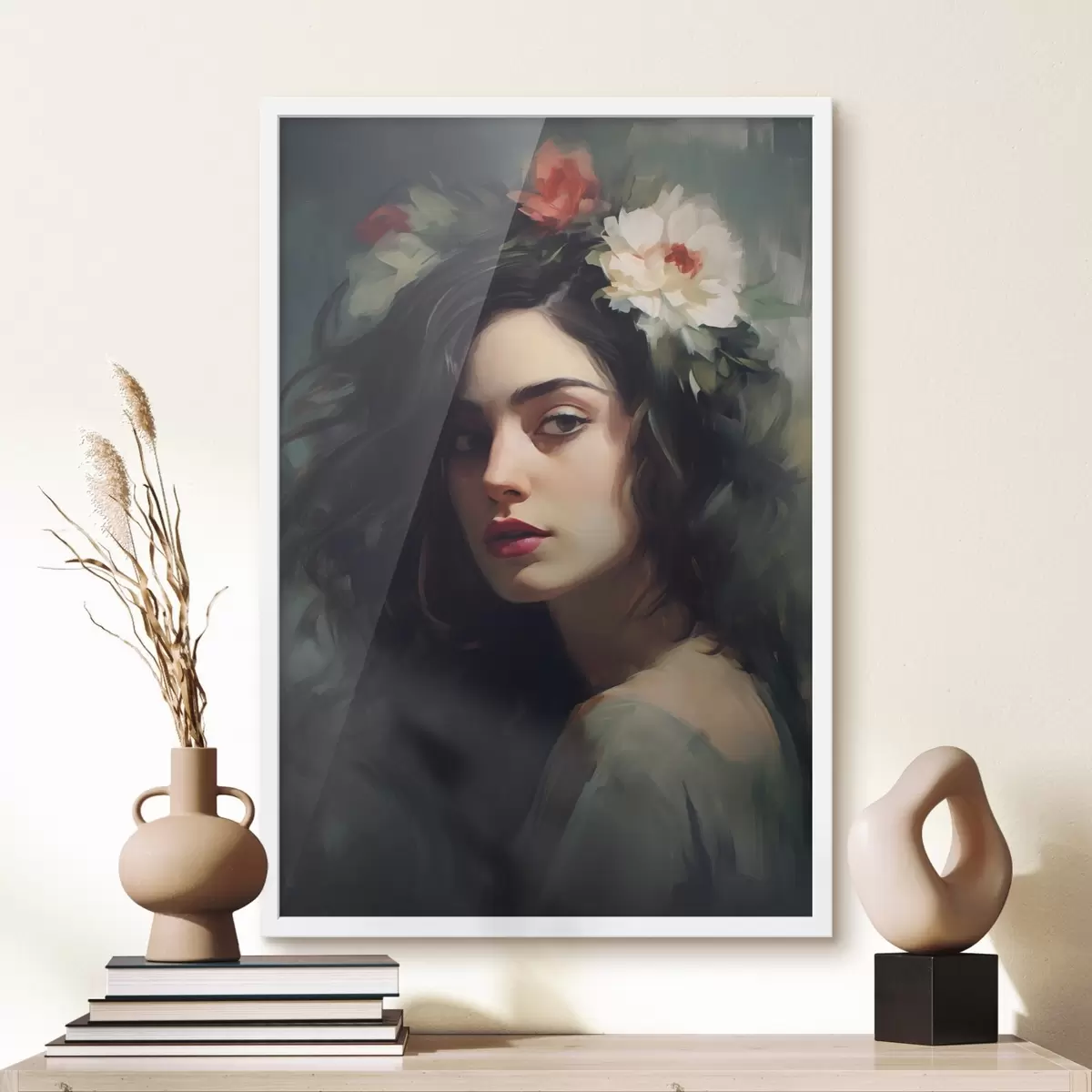 Poster Dunkelhaarige Frau mit einer Blumenkrone Nr f44762
