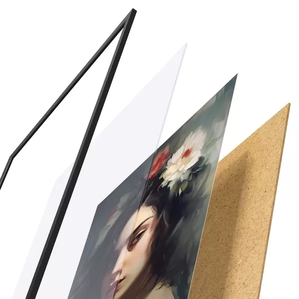 Das Poster besteht aus einem Rahmen, Plexiglas, einem gedruckten Bild und einer Rückwand aus Spanplatten. Dank der Halterungen auf der Rückseite kann das Poster sofort an die Wand gehängt werden.