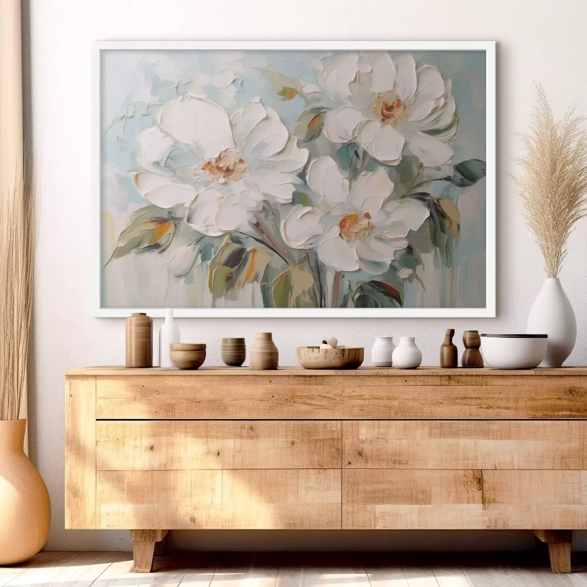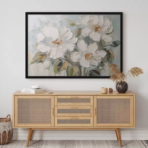 Poster Weiße Blumen Nachahmung Malerei f44775
