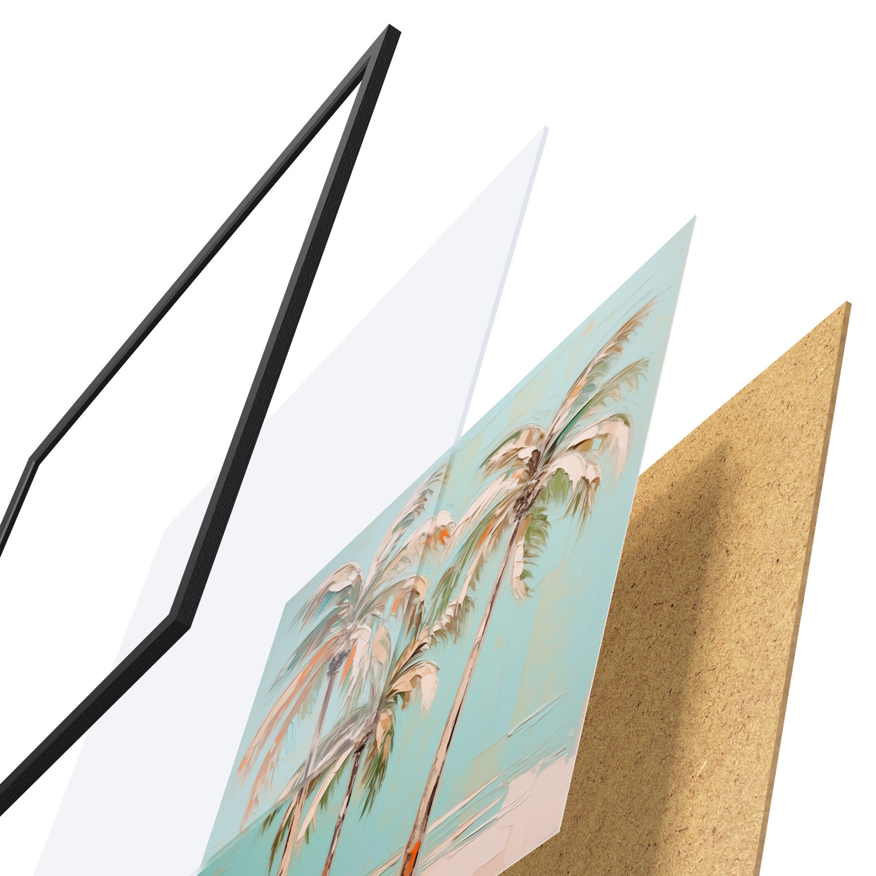Das Poster besteht aus einem Rahmen, Plexiglas, einem gedruckten Bild und einer Rückwand aus Spanplatten. Dank der Halterungen auf der Rückseite kann das Poster sofort an die Wand gehängt werden.