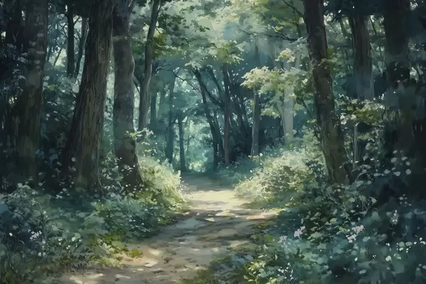 Poster Grüner Wald mit Bäumen und Sonnenlicht Nr f44784