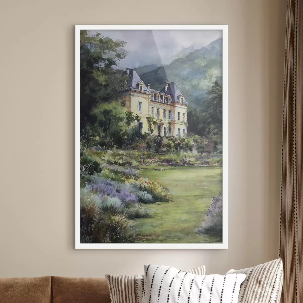 Poster Französisches Schloss, umgeben von einem Garten mit Lavendel Nr f44797