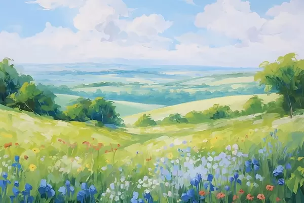 Poster Blühender Hügel mit Sommerblick Nr f44813