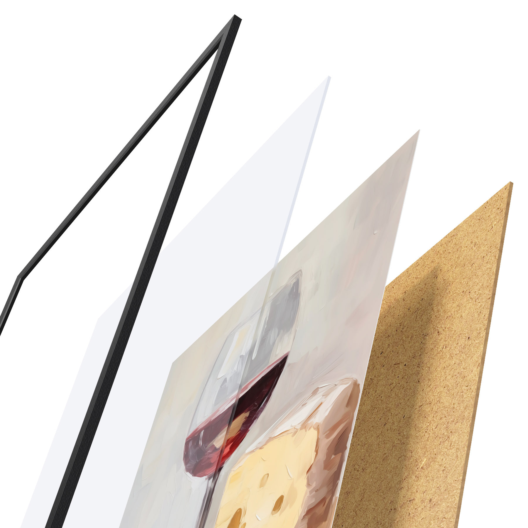 Das Poster besteht aus einem Rahmen, Plexiglas, einem gedruckten Bild und einer Rückwand aus Spanplatten. Dank der Halterungen auf der Rückseite kann das Poster sofort an die Wand gehängt werden.