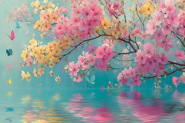Poster Blühender Zweig über Wasser im Aquarellstil Nr f44844