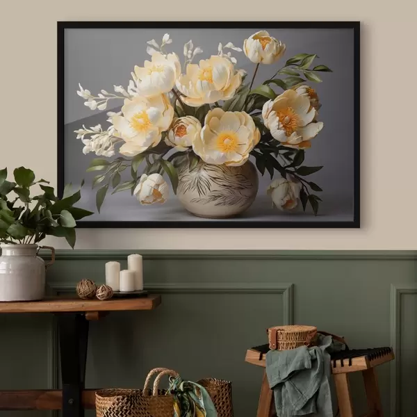 Poster Zarte Blumen mit gelben Zentren in einer gemusterten Vase Nr f44847