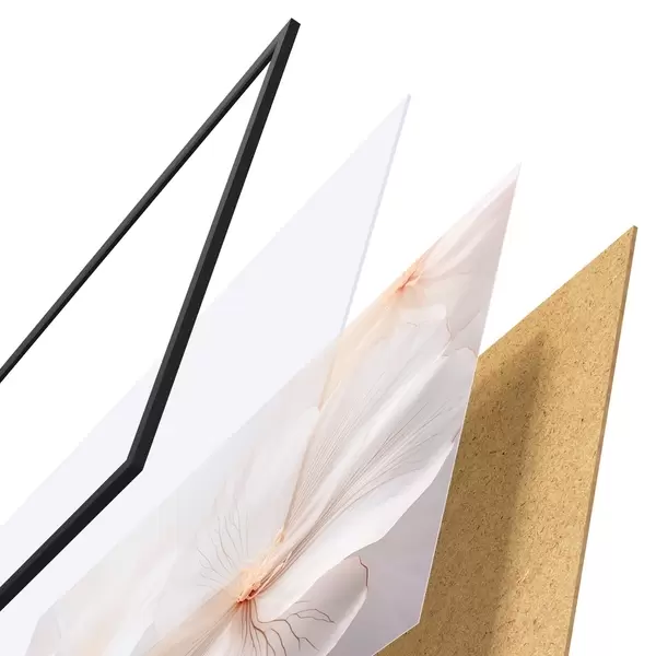 Das Poster besteht aus einem Rahmen, Plexiglas, einem gedruckten Bild und einer Rückwand aus Spanplatten. Dank der Halterungen auf der Rückseite kann das Poster sofort an die Wand gehängt werden.