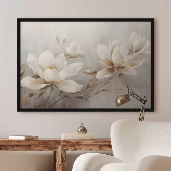 Poster Strukturierte Vintage weiße Magnolienblüten auf Zweigen in einem hellbraunen Hintergrund Nr f44869