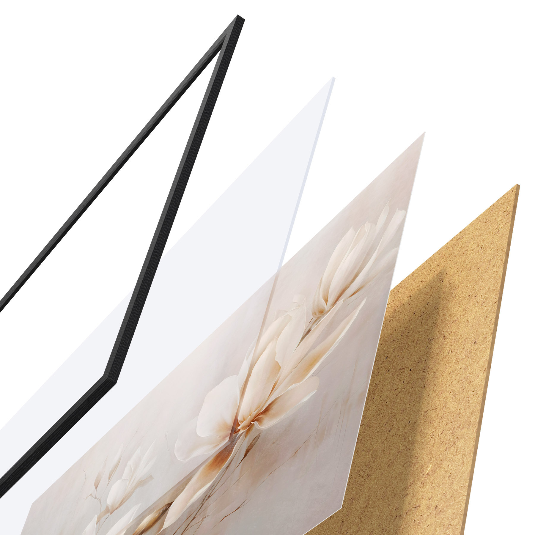 Das Poster besteht aus einem Rahmen, Plexiglas, einem gedruckten Bild und einer Rückwand aus Spanplatten. Dank der Halterungen auf der Rückseite kann das Poster sofort an die Wand gehängt werden.