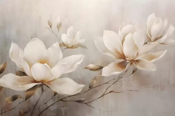 Poster Strukturierte Vintage weiße Magnolienblüten auf Zweigen in einem hellbraunen Hintergrund Nr f44869