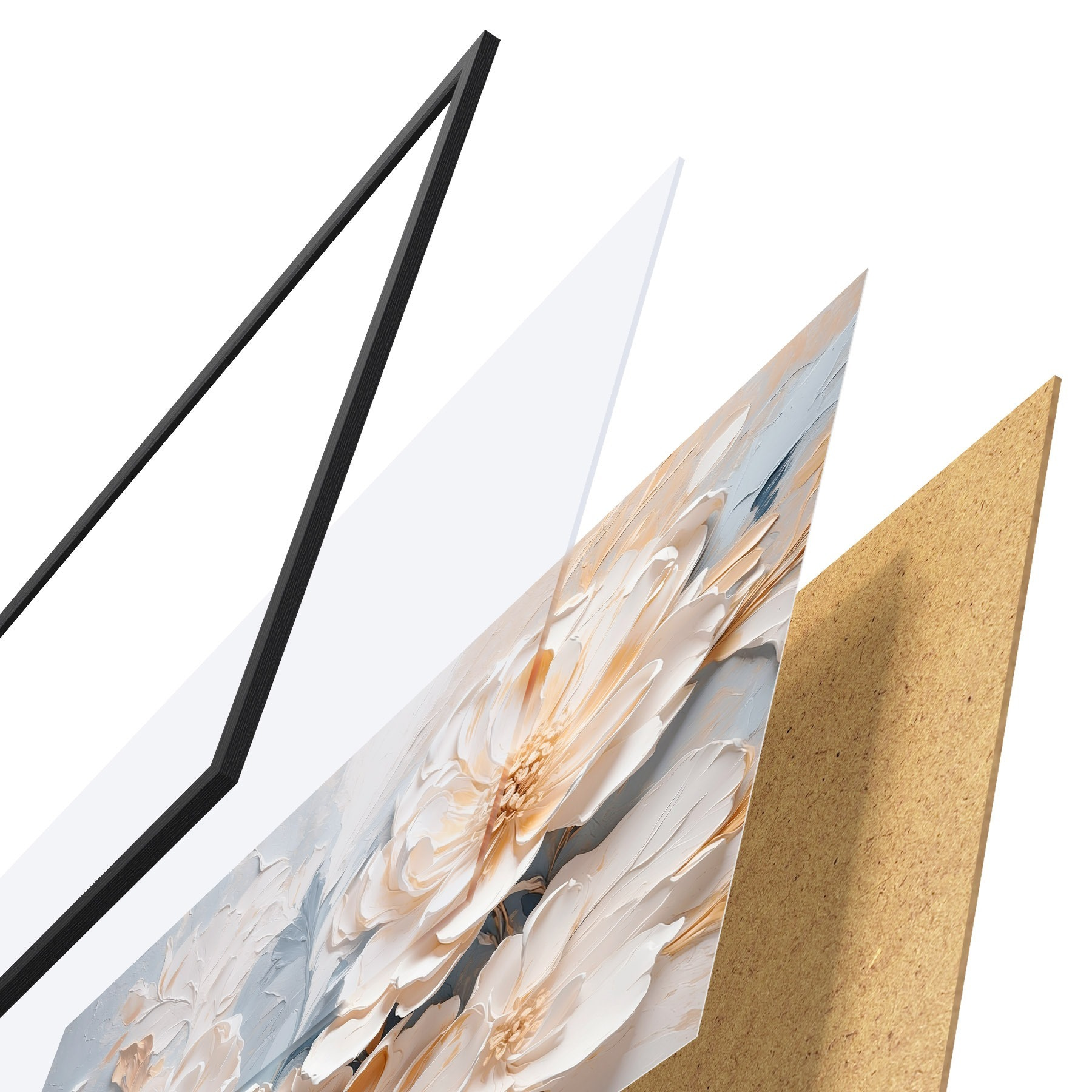 Das Poster besteht aus einem Rahmen, Plexiglas, einem gedruckten Bild und einer Rückwand aus Spanplatten. Dank der Halterungen auf der Rückseite kann das Poster sofort an die Wand gehängt werden.