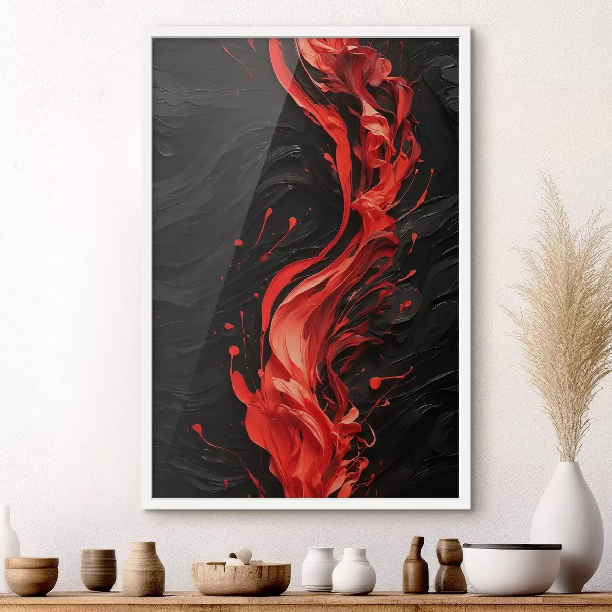 Poster Roter Farbstrahl auf schwarzem abstraktem Hintergrund Nr f44889