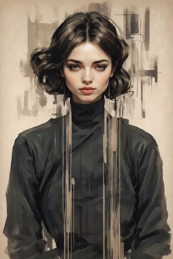 Poster Porträt einer Frau mit kurzen dunklen Haaren auf abstraktem Hintergrund Nr f44890