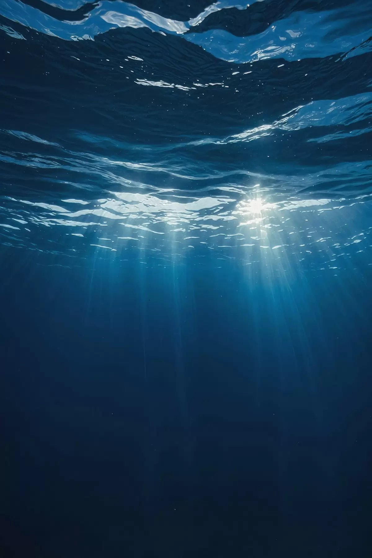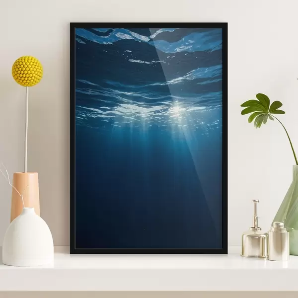 Poster Lichtstrahlen unter Wasser im tiefblauen Ozean Nr f44897