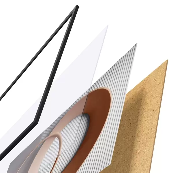 Das Poster besteht aus einem Rahmen, Plexiglas, einem gedruckten Bild und einer Rückwand aus Spanplatten. Dank der Halterungen auf der Rückseite kann das Poster sofort an die Wand gehängt werden.