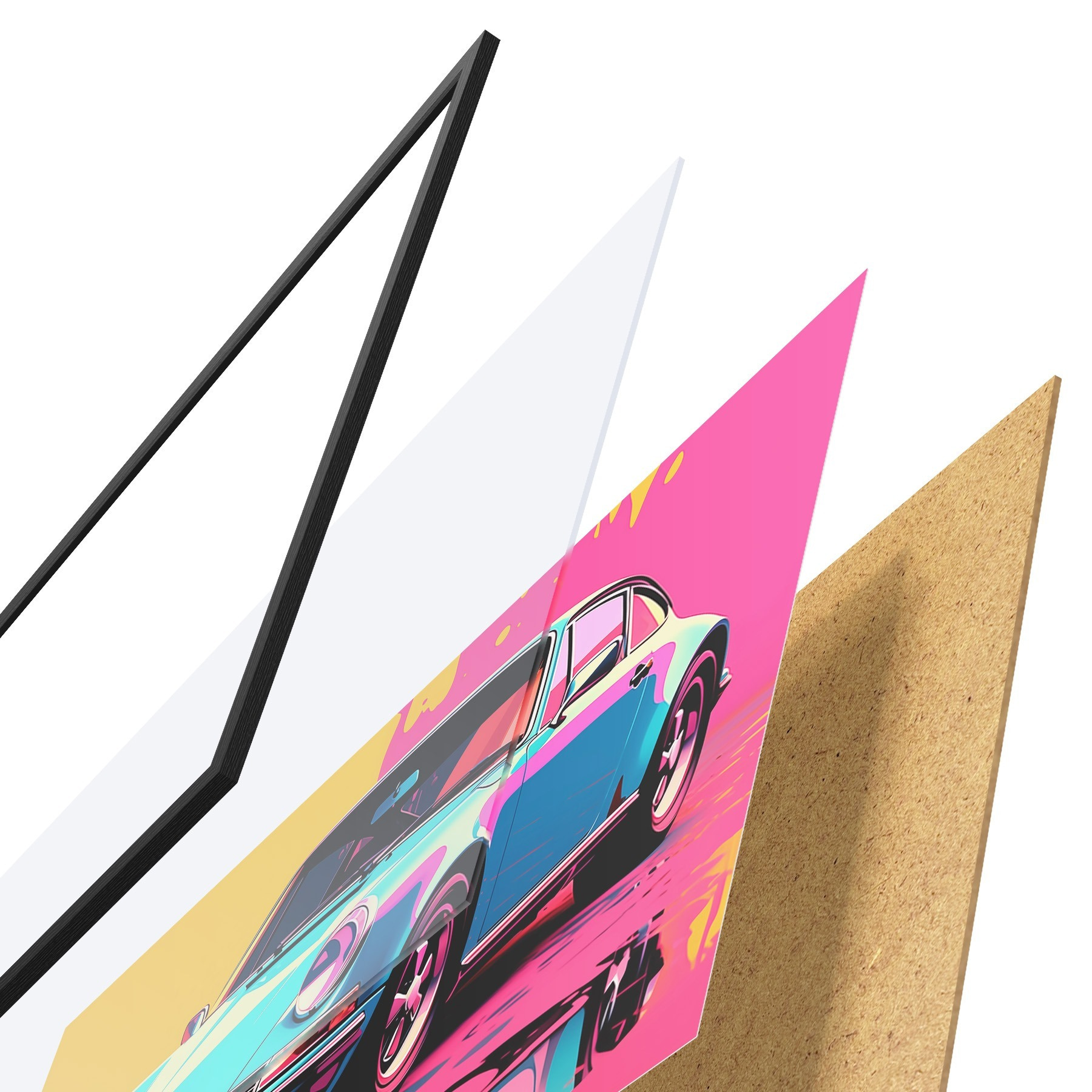 Das Poster besteht aus einem Rahmen, Plexiglas, einem gedruckten Bild und einer Rückwand aus Spanplatten. Dank der Halterungen auf der Rückseite kann das Poster sofort an die Wand gehängt werden.