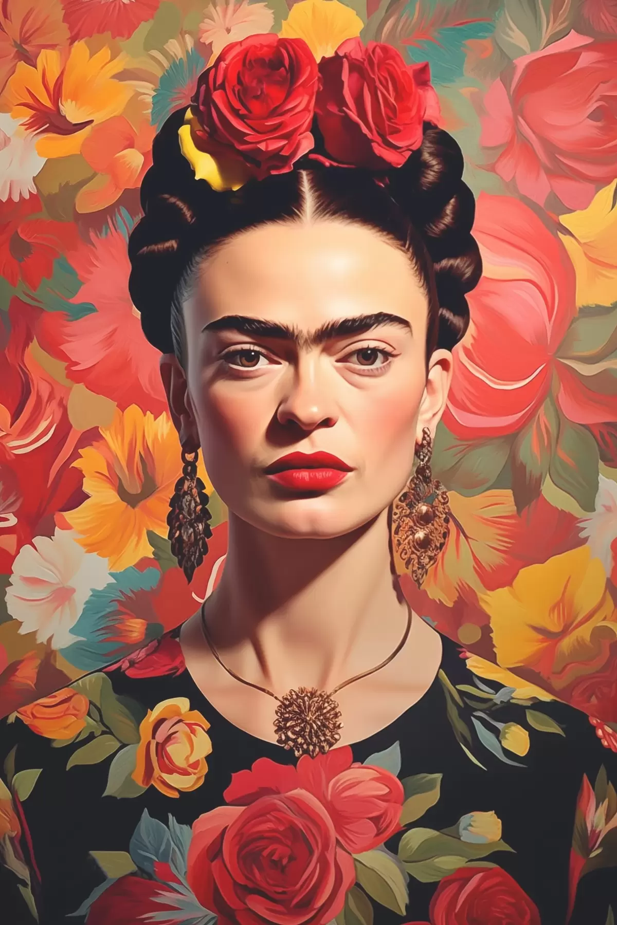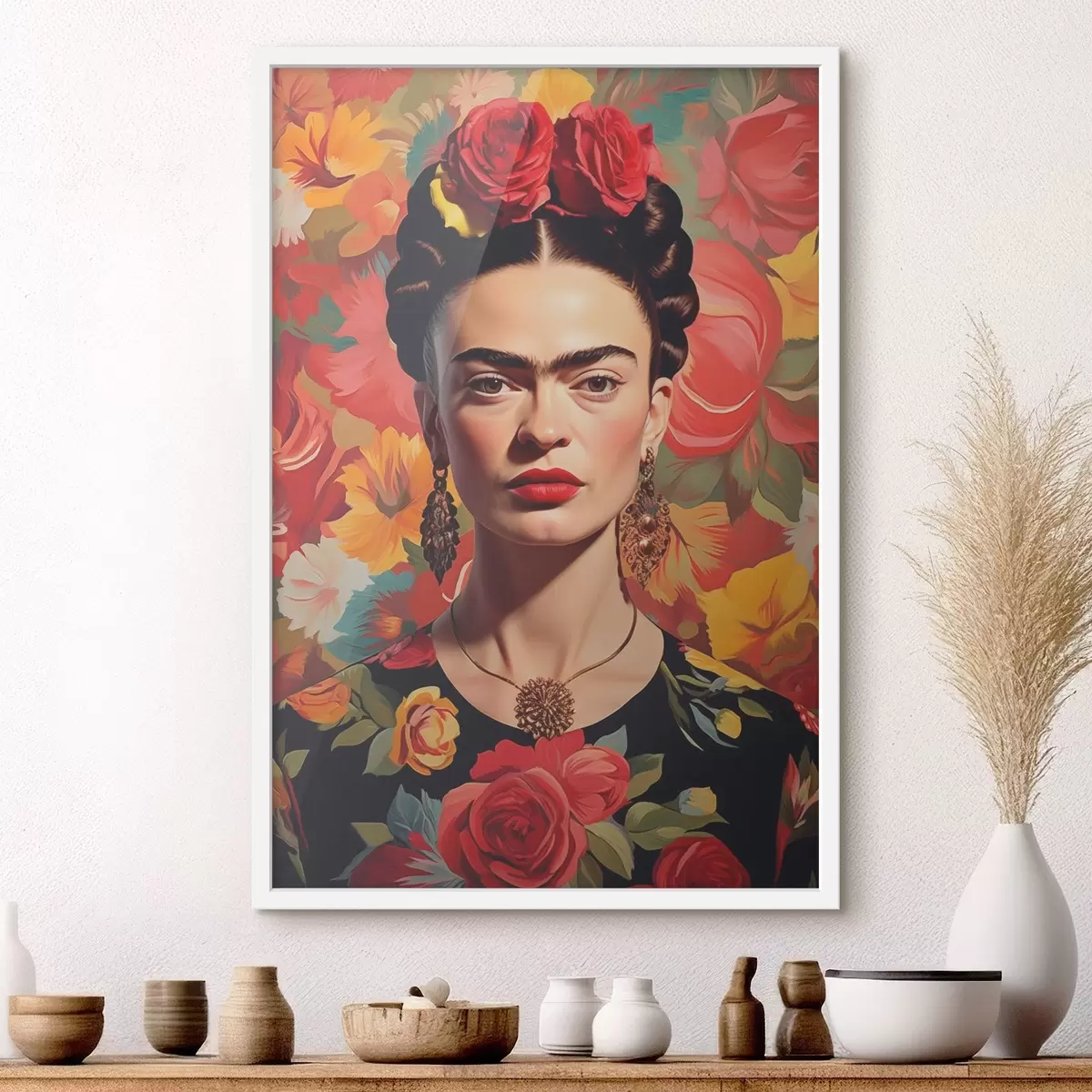 Poster Porträt vor dem Hintergrund von Blumen Nr f44920