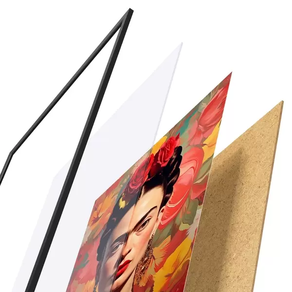 Das Poster besteht aus einem Rahmen, Plexiglas, einem gedruckten Bild und einer Rückwand aus Spanplatten. Dank der Halterungen auf der Rückseite kann das Poster sofort an die Wand gehängt werden.