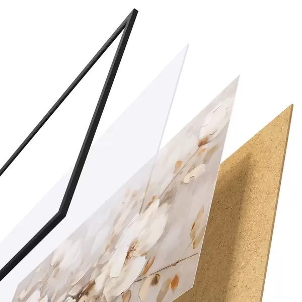 Das Poster besteht aus einem Rahmen, Plexiglas, einem gedruckten Bild und einer Rückwand aus Spanplatten. Dank der Halterungen auf der Rückseite kann das Poster sofort an die Wand gehängt werden.