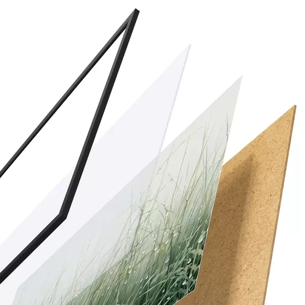 Das Poster besteht aus einem Rahmen, Plexiglas, einem gedruckten Bild und einer Rückwand aus Spanplatten. Dank der Halterungen auf der Rückseite kann das Poster sofort an die Wand gehängt werden.