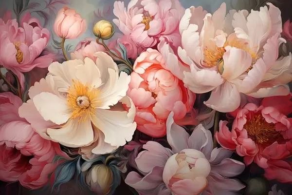 Poster Üppige Pfingstrosen in rosa Farbtönen im Stil eines Ölgemäldes Nr f44936