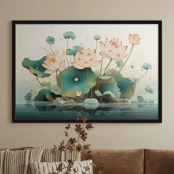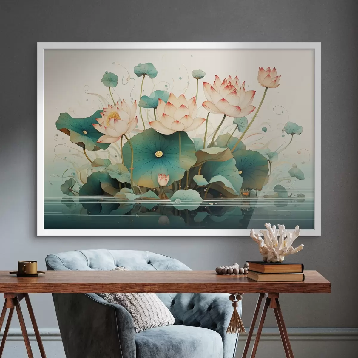 Poster Lotosblumen mit großen Blättern im Illustrationsstil Nr f44939