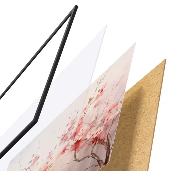 Das Poster besteht aus einem Rahmen, Plexiglas, einem gedruckten Bild und einer Rückwand aus Spanplatten. Dank der Halterungen auf der Rückseite kann das Poster sofort an die Wand gehängt werden.