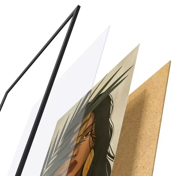 Das Poster besteht aus einem Rahmen, Plexiglas, einem gedruckten Bild und einer Rückwand aus Spanplatten. Dank der Halterungen auf der Rückseite kann das Poster sofort an die Wand gehängt werden.