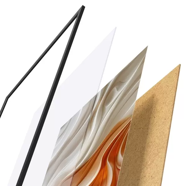 Das Poster besteht aus einem Rahmen, Plexiglas, einem gedruckten Bild und einer Rückwand aus Spanplatten. Dank der Halterungen auf der Rückseite kann das Poster sofort an die Wand gehängt werden.