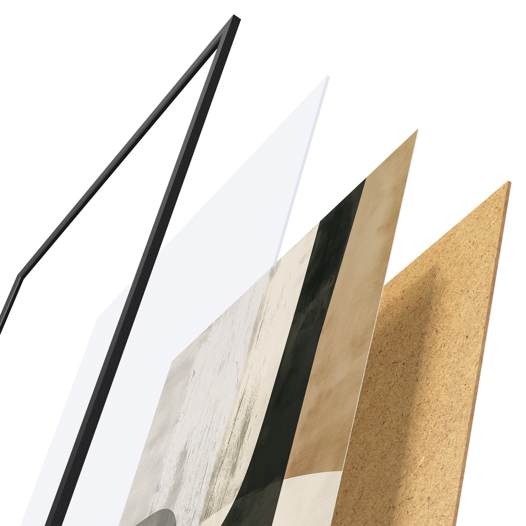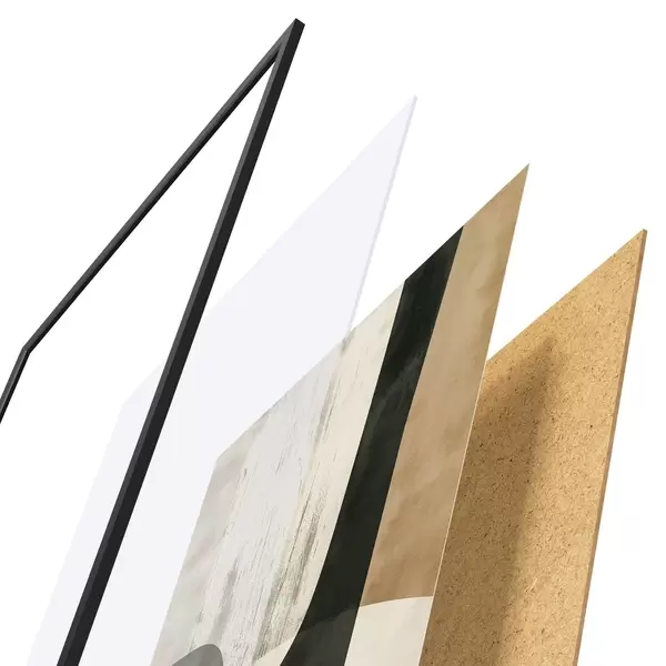 Das Poster besteht aus einem Rahmen, Plexiglas, einem gedruckten Bild und einer Rückwand aus Spanplatten. Dank der Halterungen auf der Rückseite kann das Poster sofort an die Wand gehängt werden.