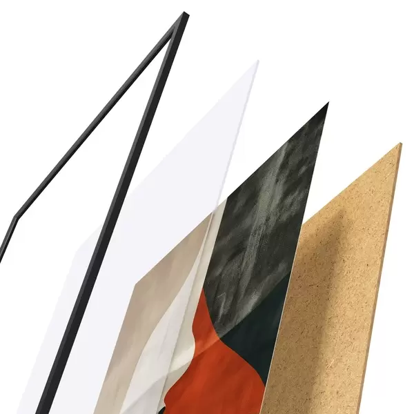 Das Poster besteht aus einem Rahmen, Plexiglas, einem gedruckten Bild und einer Rückwand aus Spanplatten. Dank der Halterungen auf der Rückseite kann das Poster sofort an die Wand gehängt werden.