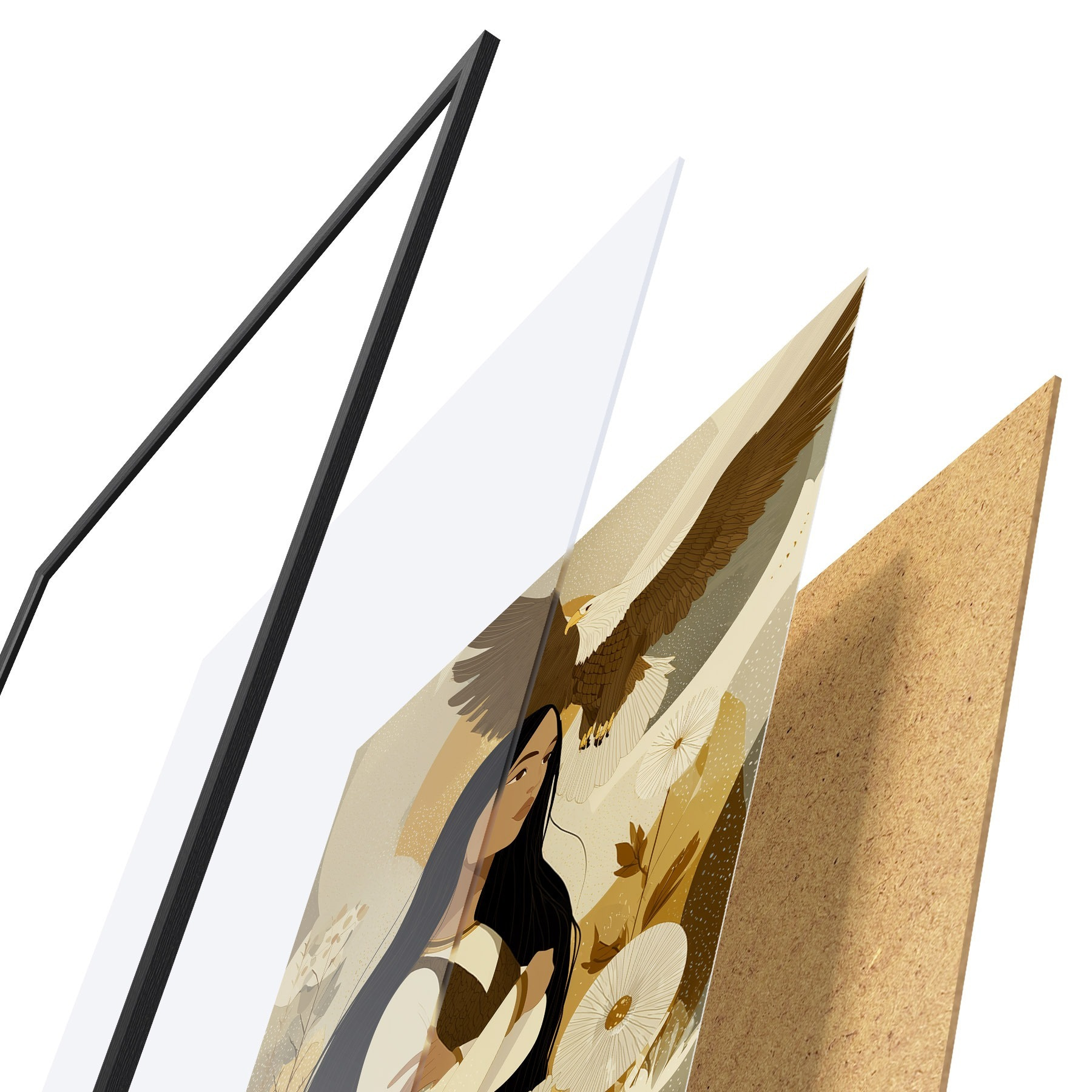 Poster Frau mit fliegendem Adler, Tribal-Stil, beige Farben Nr f44977