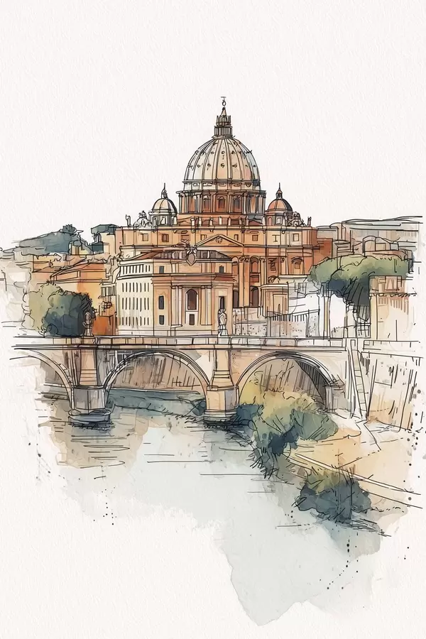Poster Aquarell Rom Stadt, Skizze Zeichnung, Architektur Nr f44983