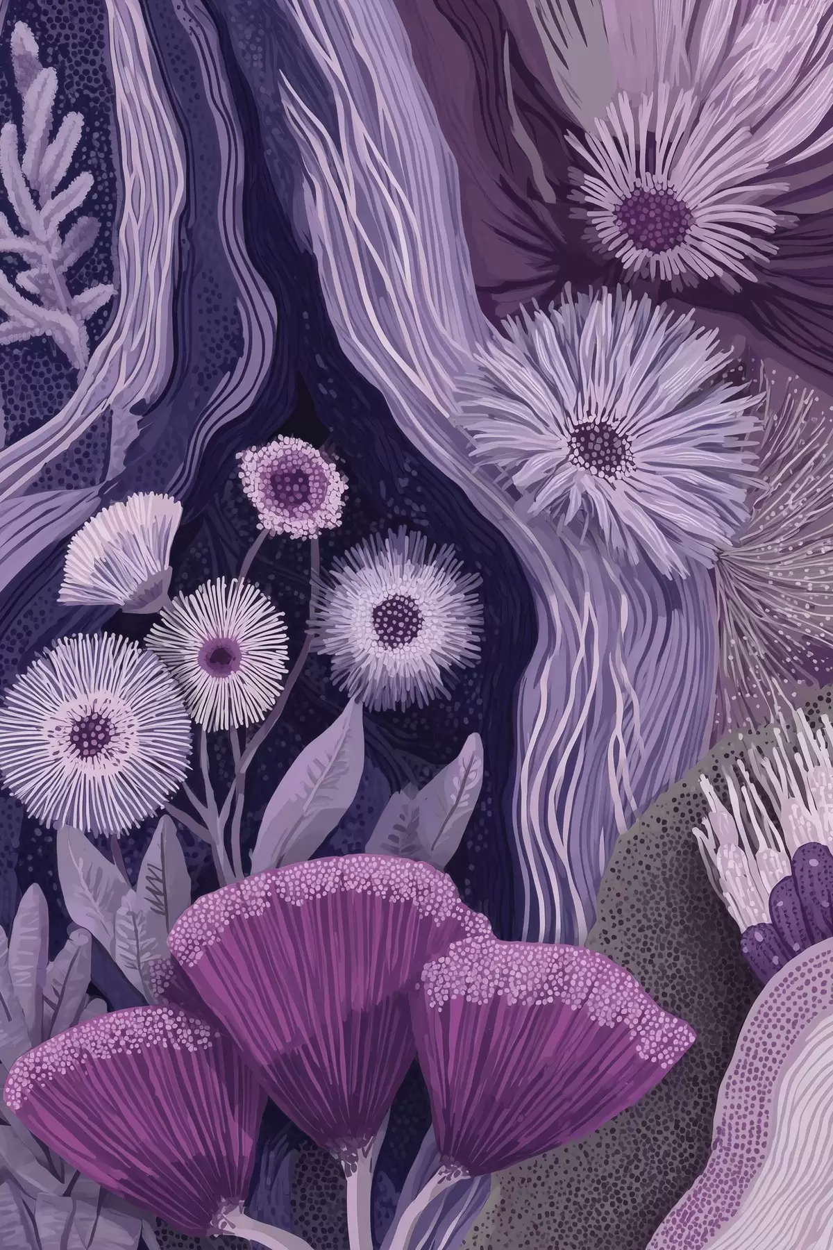 Poster Blumenmuster in lila Farben, detaillierte Zeichnung Nr f44984