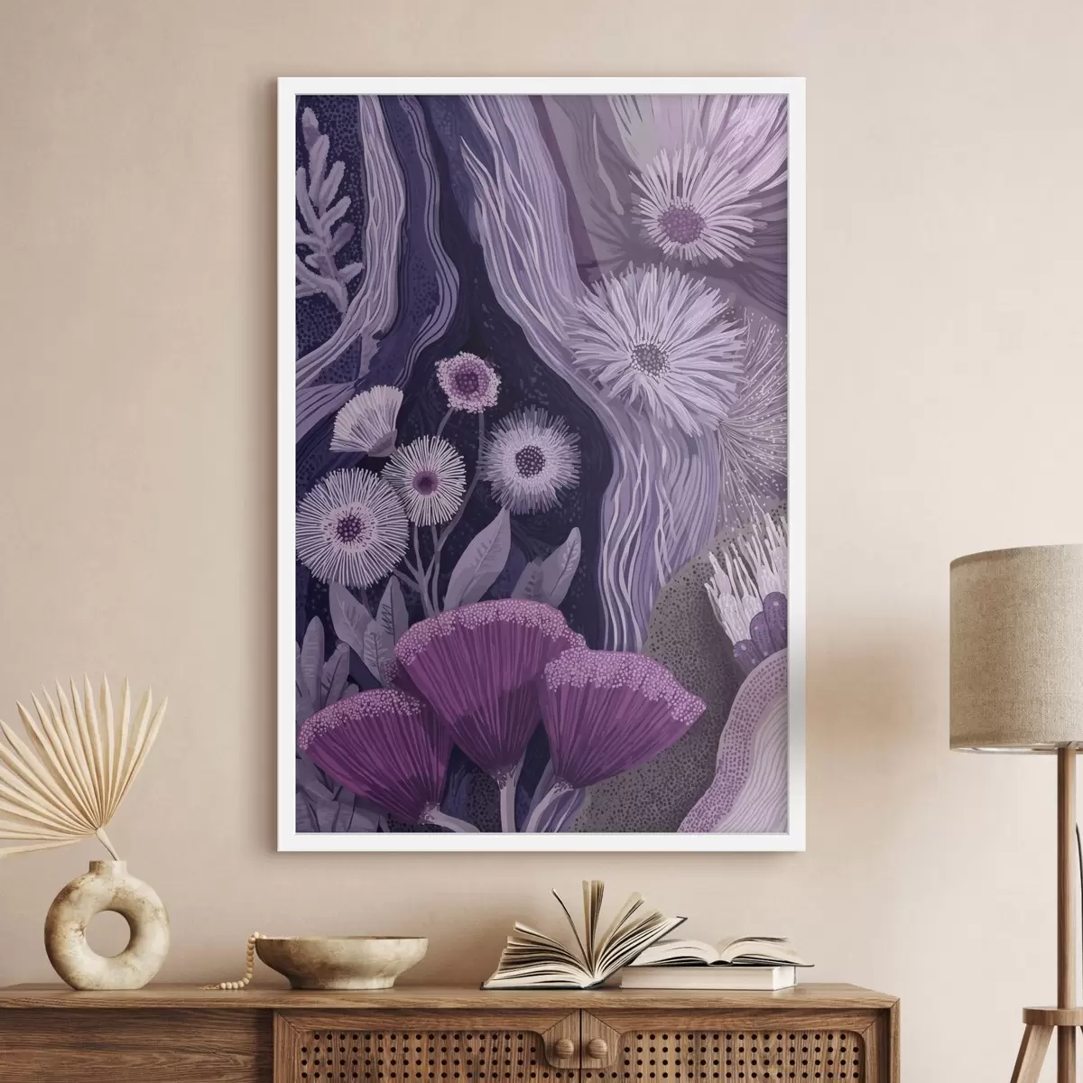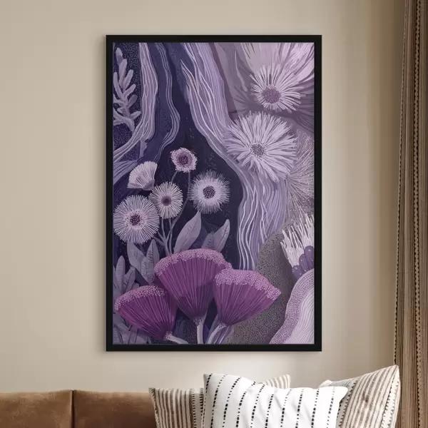 Poster Blumenmuster in lila Farben, detaillierte Zeichnung f44984