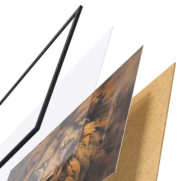 Das Poster besteht aus einem Rahmen, Plexiglas, einem gedruckten Bild und einer Rückwand aus Spanplatten. Dank der Halterungen auf der Rückseite kann das Poster sofort an die Wand gehängt werden.