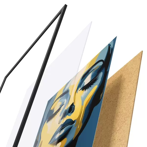 Das Poster besteht aus einem Rahmen, Plexiglas, einem gedruckten Bild und einer Rückwand aus Spanplatten. Dank der Halterungen auf der Rückseite kann das Poster sofort an die Wand gehängt werden.