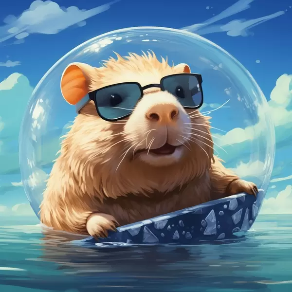 Poster Fröhliches Wasserschwein in einer durchsichtigen Blase auf dem Wasser f45029