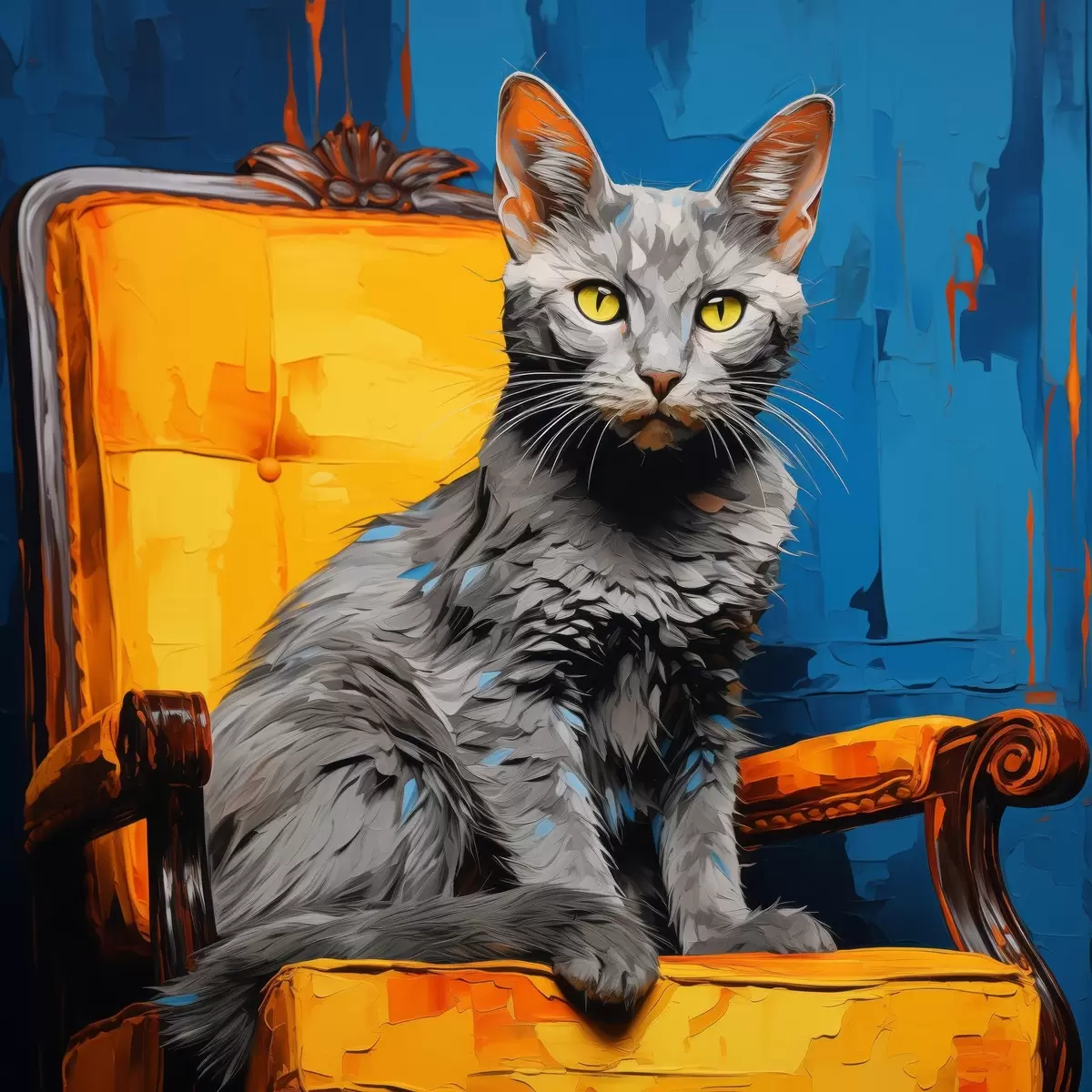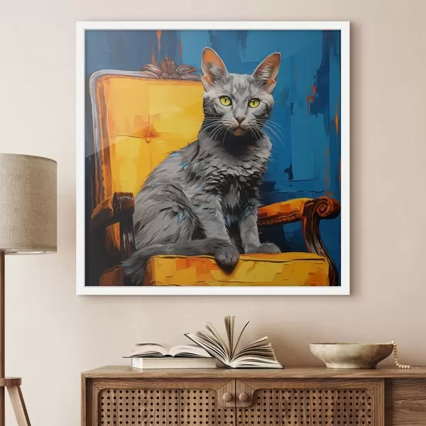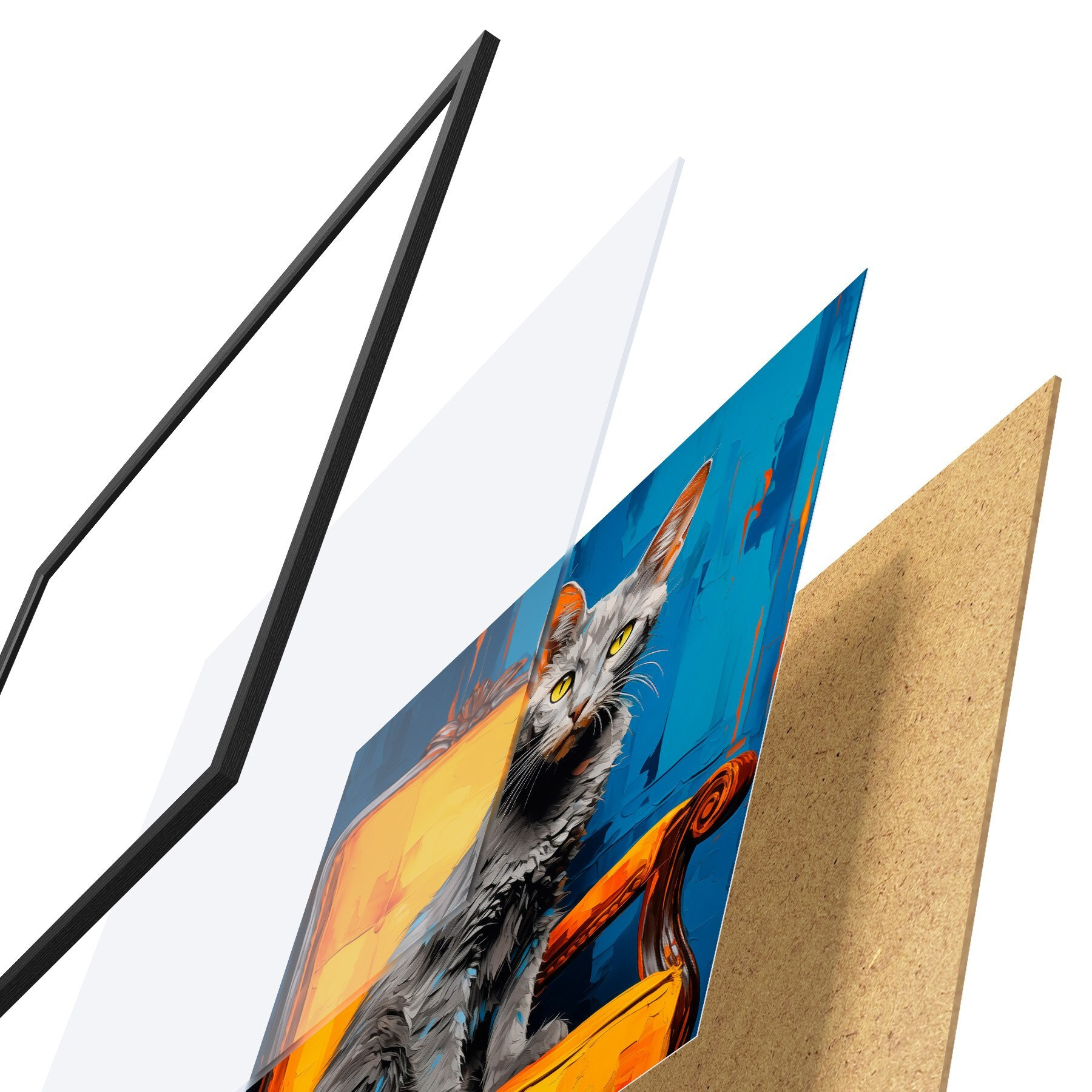 Poster Künstlerische Katze Porträt auf einem blauen Hintergrund Nr f45030