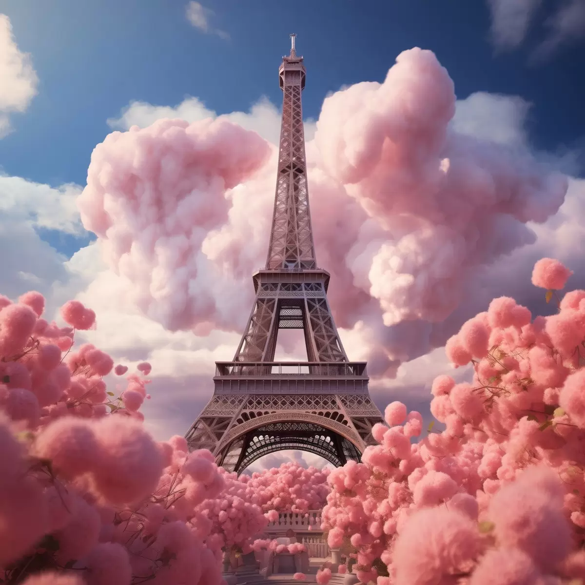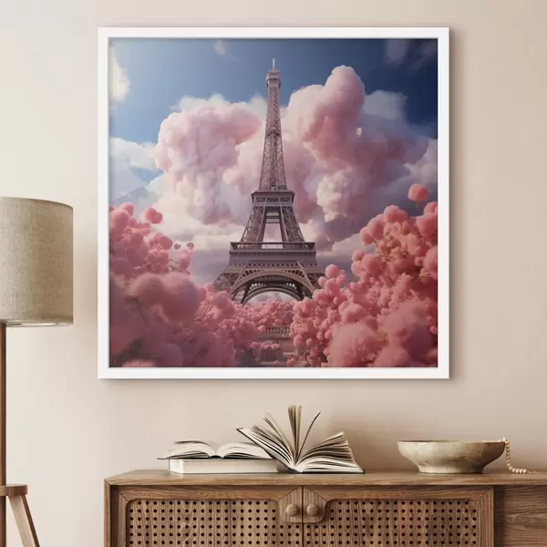 Poster Eiffelturm in rosa Wolken im Fantasy-Stil Nr f45036