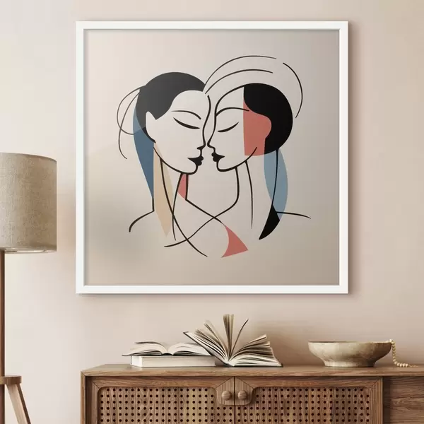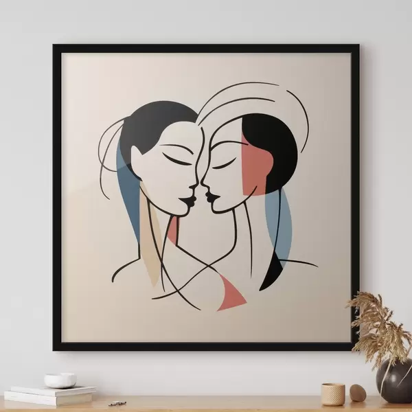 Poster Zwei Gesichter im abstrakten Stil mit bunten Elementen Nr f45037