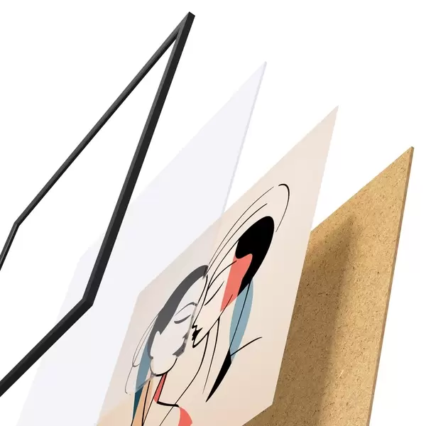 Das Poster besteht aus einem Rahmen, Plexiglas, einem gedruckten Bild und einer Rückwand aus Spanplatten. Dank der Halterungen auf der Rückseite kann das Poster sofort an die Wand gehängt werden.