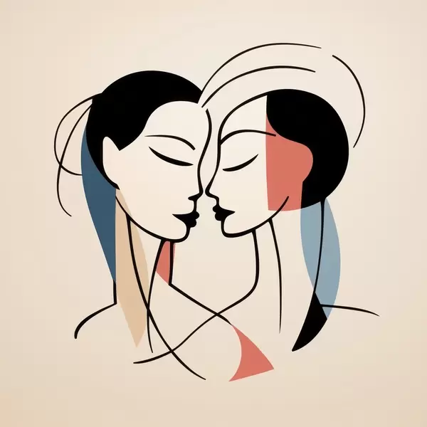 Poster Zwei Gesichter im abstrakten Stil mit bunten Elementen Nr f45037