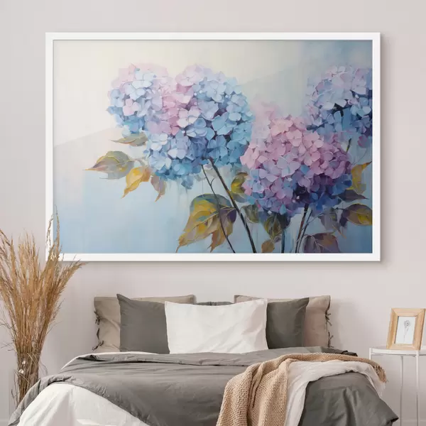 Poster Abstrakte Hortensienblüten in sanften Farbtönen f45056