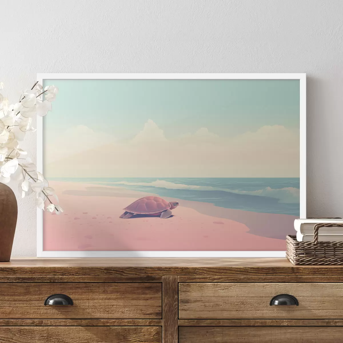 Poster Meeresschildkröte an einem rosa Strand: minimalistische Landschaft f45059