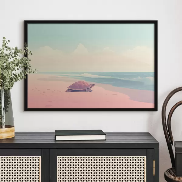 Poster Meeresschildkröte an einem rosa Strand: minimalistische Landschaft Nr f45059