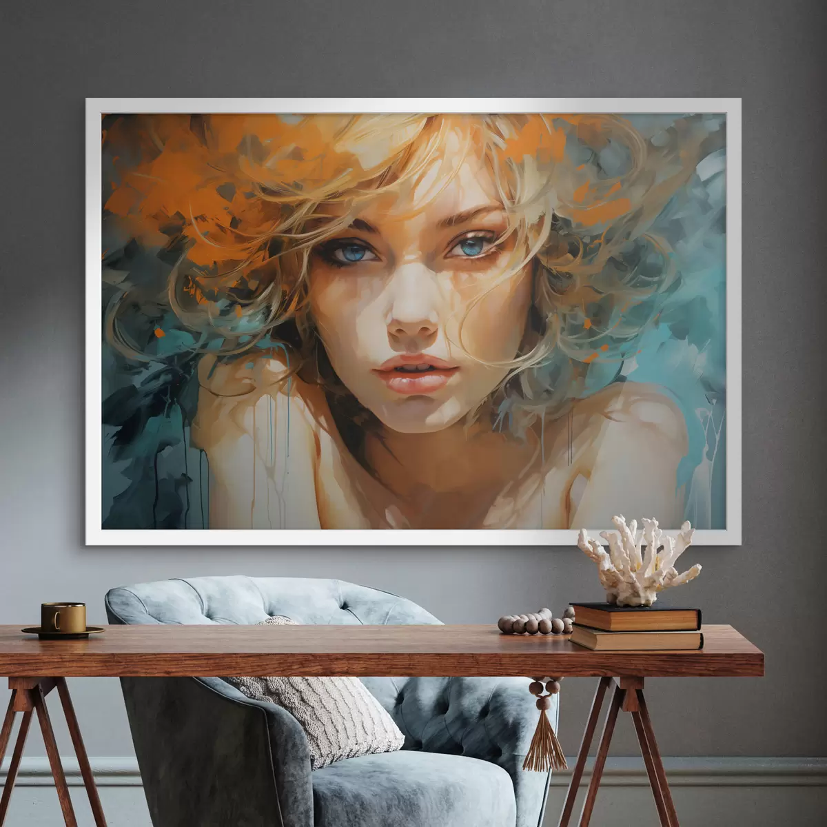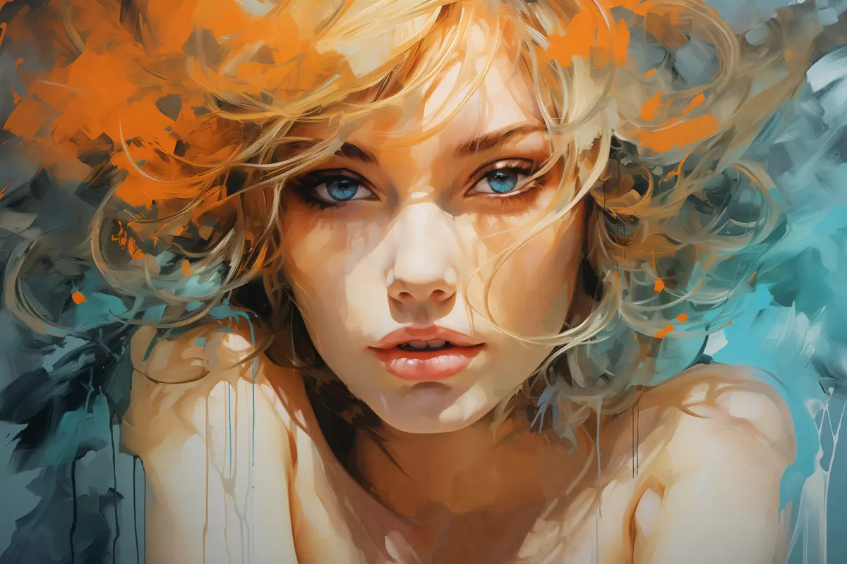 Poster Ausdrucksstarkes Frauenbild in abstrakt-realistischem Stil f45061