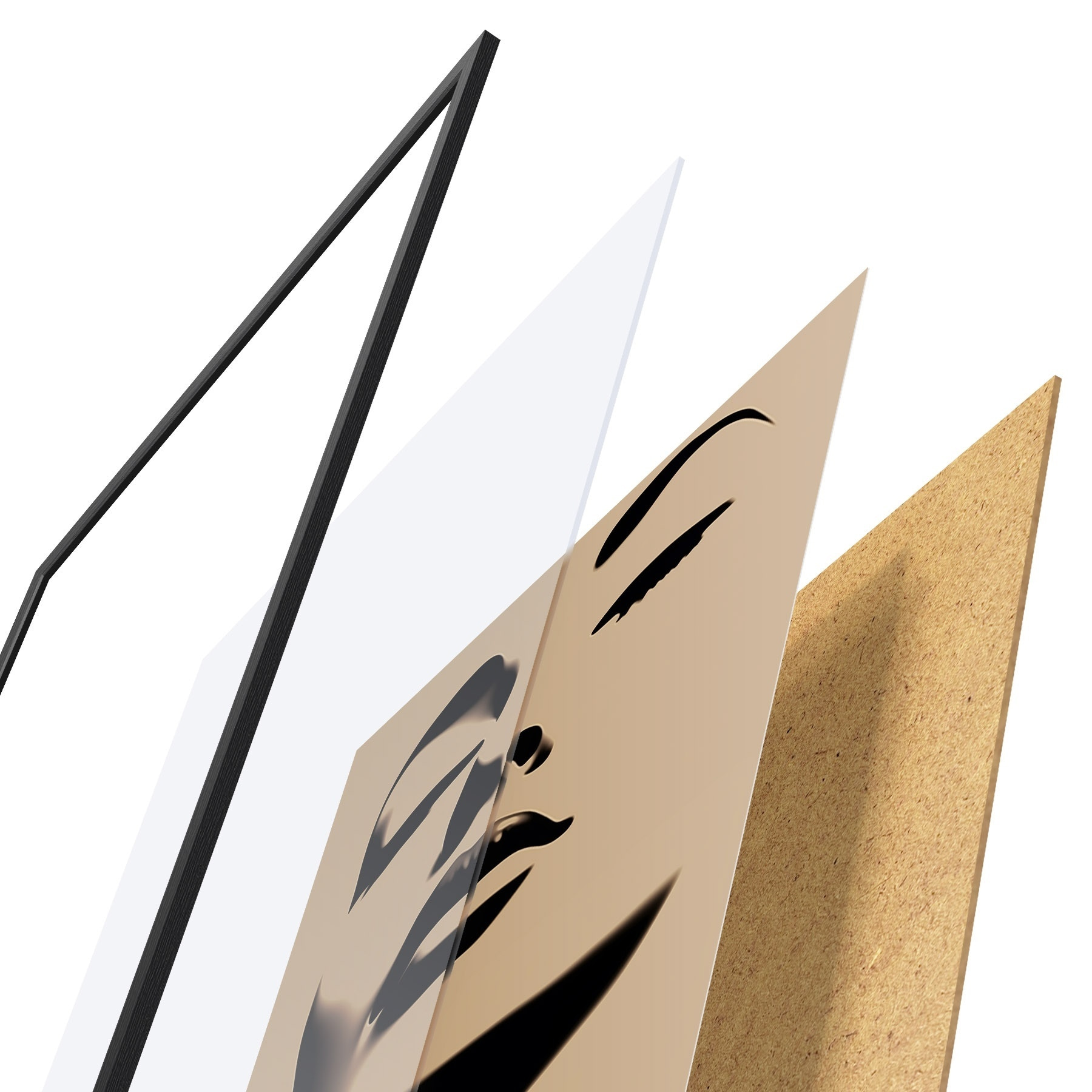 Das Poster besteht aus einem Rahmen, Plexiglas, einem gedruckten Bild und einer Rückwand aus Spanplatten. Dank der Halterungen auf der Rückseite kann das Poster sofort an die Wand gehängt werden.