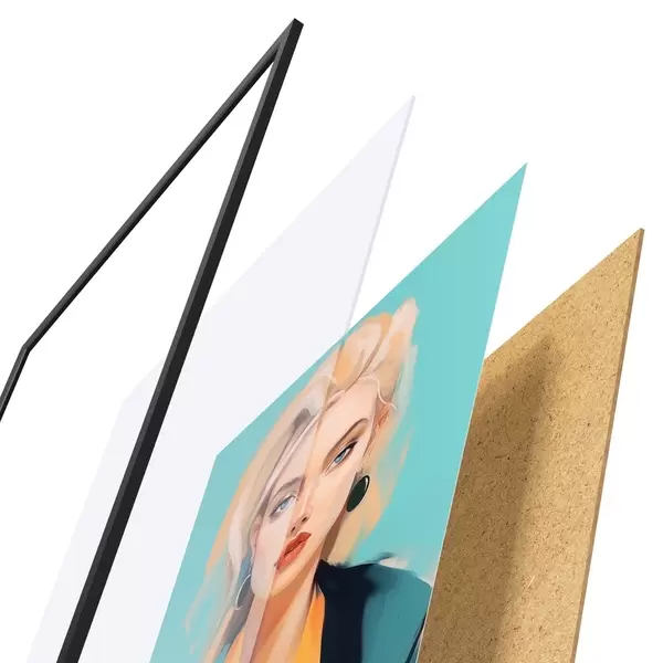 Das Poster besteht aus einem Rahmen, Plexiglas, einem gedruckten Bild und einer Rückwand aus Spanplatten. Dank der Halterungen auf der Rückseite kann das Poster sofort an die Wand gehängt werden.